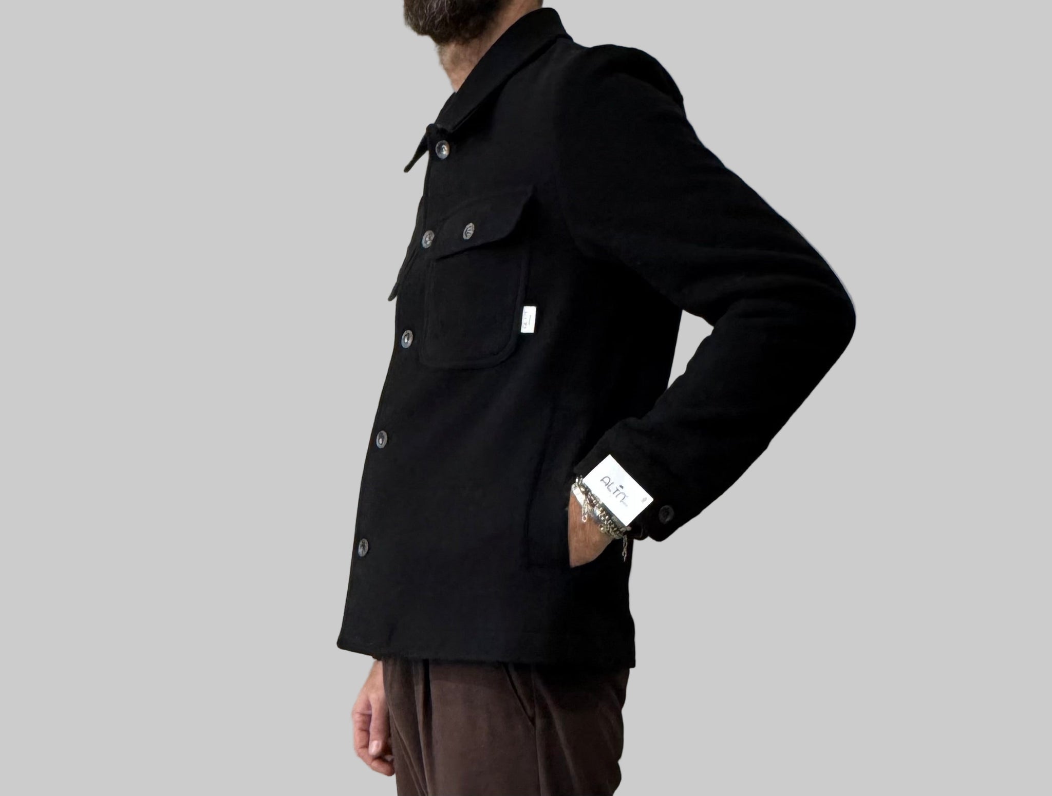 La FIELD JACKET ALTN è una giacca camicia in misto lana che unisce eleganza e praticità. Realizzata in Italia, presenta tasche frontali con pattina e chiusura centrale con bottoni, garantendo funzionalità e stile. La vestibilità regolare la rende versatile e confortevole per un uso quotidiano. Un capo essenziale che combina qualità costruttiva e design contemporaneo, perfetto per chi ricerca autenticità e solidità nei propri capi.