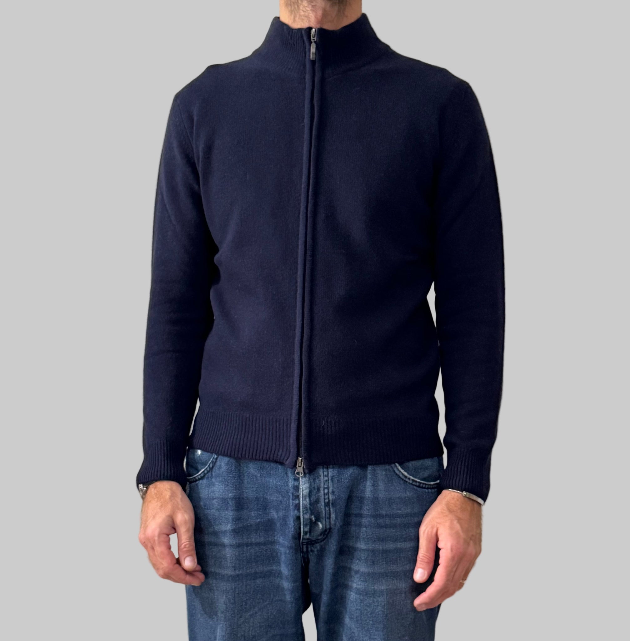 Maglia in lana pettinata di qualità superiore con chiusura centrale a doppio cursore, che garantisce praticità e affidabilità nel tempo. La vestibilità regolare assicura comfort senza compromessi, adattandosi perfettamente alla silhouette. Realizzata interamente in Italia, questa full zip rappresenta l'eccellenza della manifattura italiana, combinando tradizione artigianale e materiali nobili. Ideale per chi ricerca un capo versatile, durevole e dal design senza tempo.