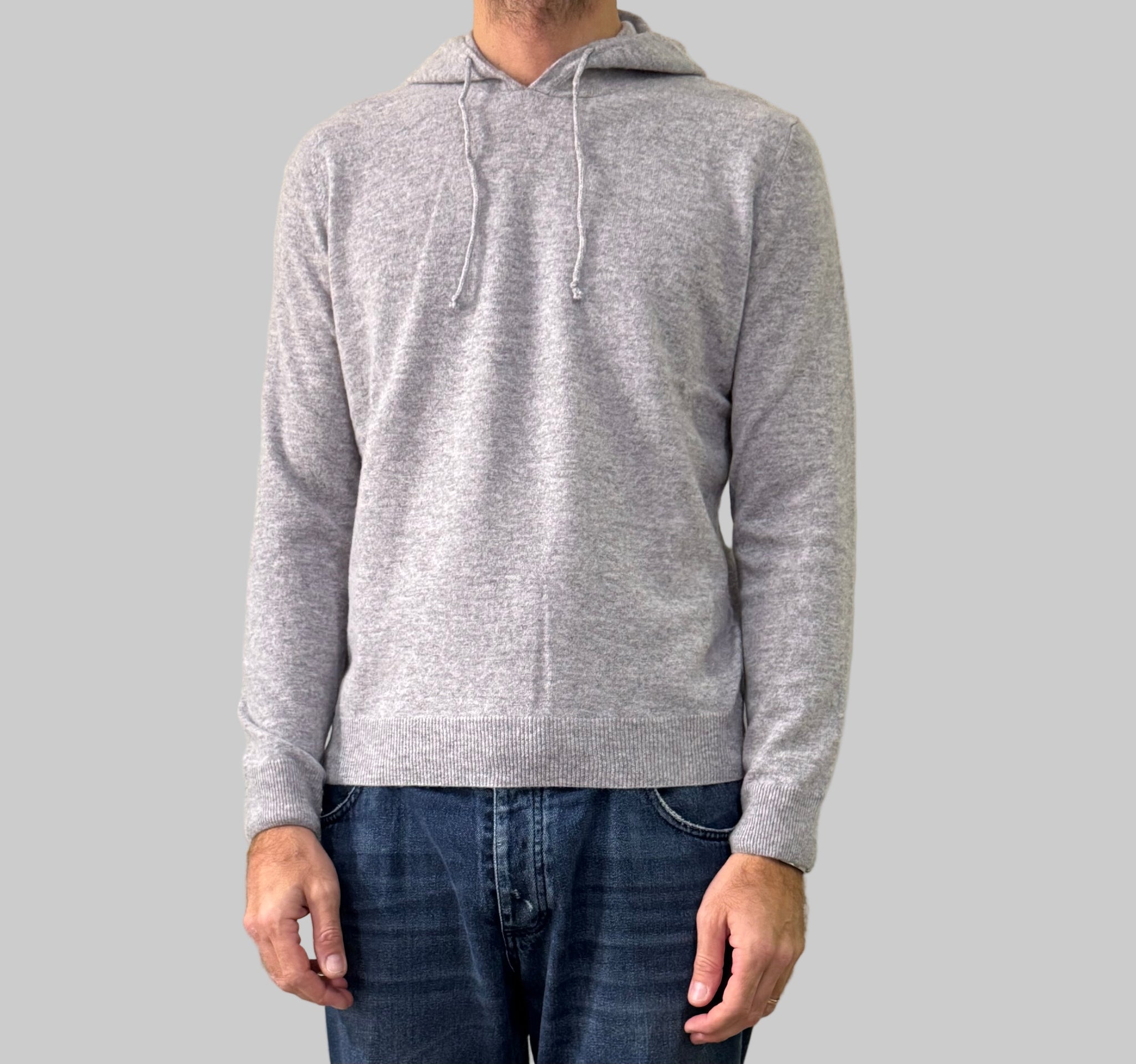 Maglia in pura lana merinos con cappuccio, realizzata interamente in Italia. Questo filato garantisce morbidezza e traspirabilità, mantenendo le proprietà termoregolatrici naturali della fibra. La vestibilità regolare assicura comfort senza costrizioni, ideale per chi ricerca qualità e praticità. Perfetta per la stagione fredda, combina eleganza e funzionalità in un capo versatile e durevole.