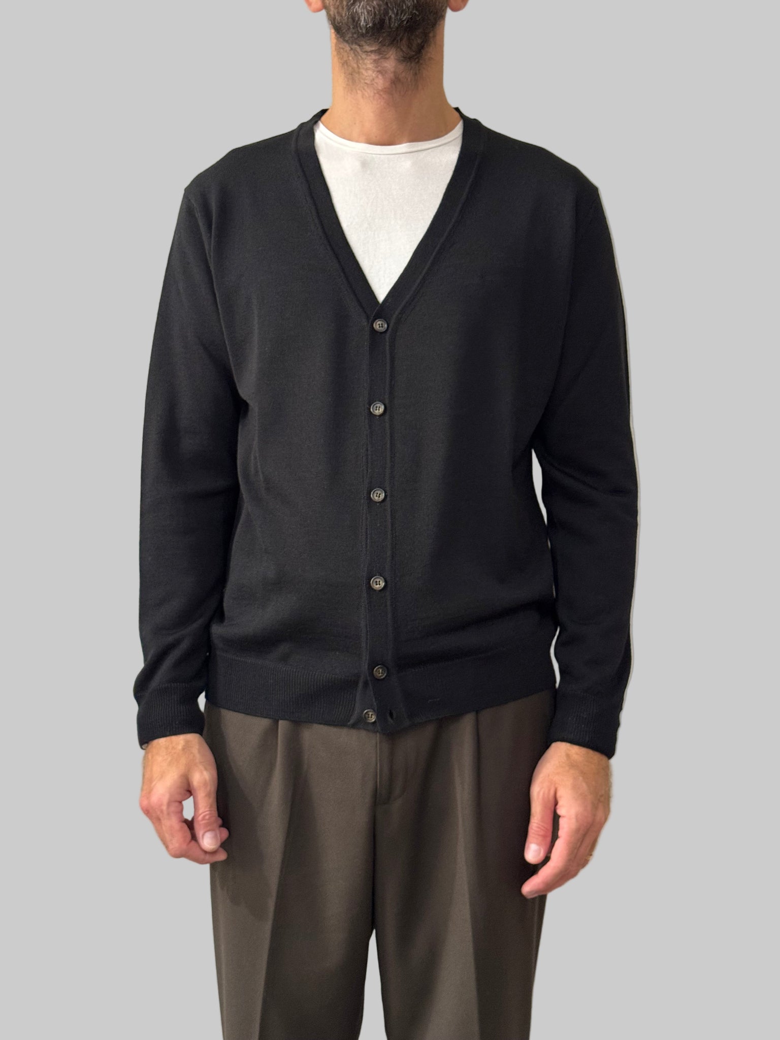 Questo cardigan, realizzato in Italia, presenta una vestibilità regolare che coniuga comfort e raffinatezza. Il filato misto lana merinos garantisce un naturale isolamento termico e una buona traspirabilità, ideale per mantenere uno stile elegante durante le giornate più fresche. Questo capo versatile e di alta qualità è perfetto per chi ricerca resistenza e funzionalità in un design meticolosamente curato.