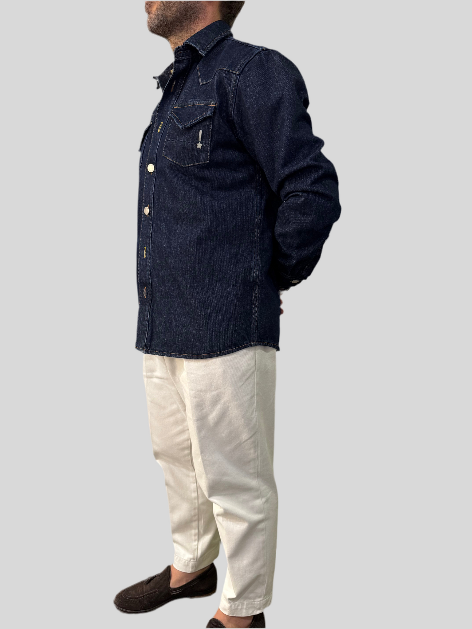Questa giacca camicia in denim ELVIS CERMIS presenta una finitura zero-wash per un look pulito e autentico. Realizzata in Italia, offre una vestibilità regolare per un comodo utilizzo quotidiano e include pratiche tasche sul petto per unire stile e funzionalità. La qualità del tessuto e il design la rendono una scelta raffinata per chi cerca un'eleganza denim senza tempo.