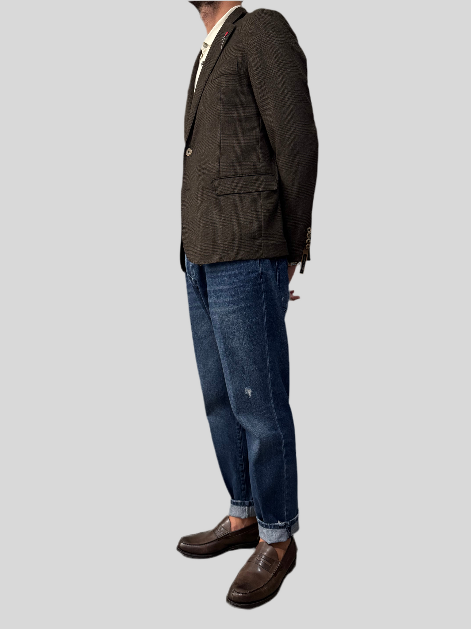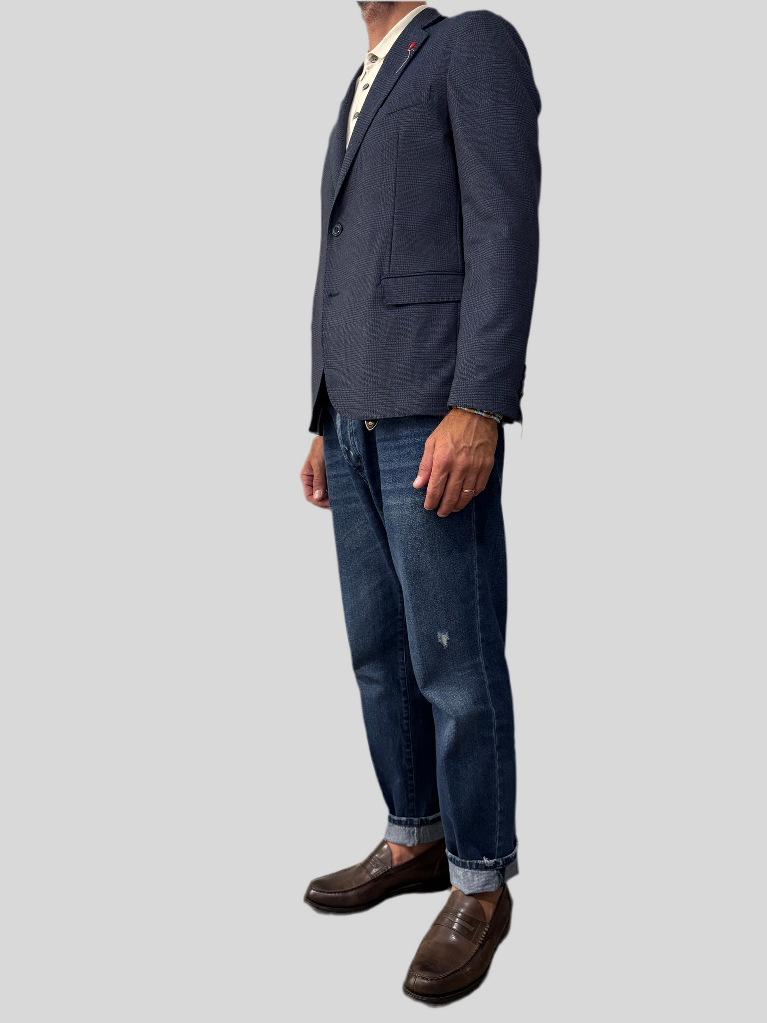 La giacca monopetto TPV325 Bernese Milano presenta un design raffinato con due bottoni e petto napoletano, ideale per un look elegante e di carattere. Le tasche con pattina e i due spacchi posteriori garantiscono comfort e facilità di movimento, mentre il tessuto pied de poule aggiunge un tocco distintivo di stile classico. La vestibilità regolare assicura un equilibrio tra comodità e linea sartoriale, esaltando la qualità del made in Italy. Perfetta per chi cerca un capo versatile, capace di coniugare tradizione e modernità.