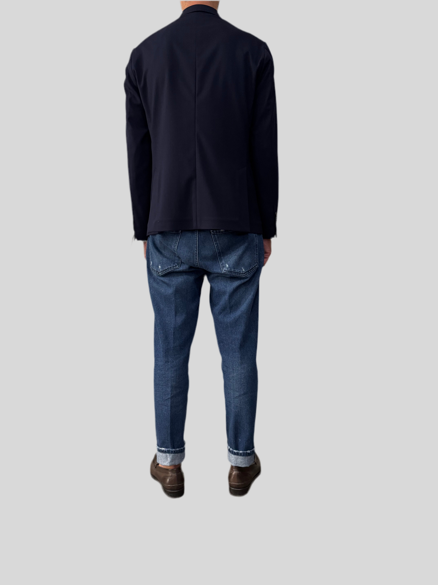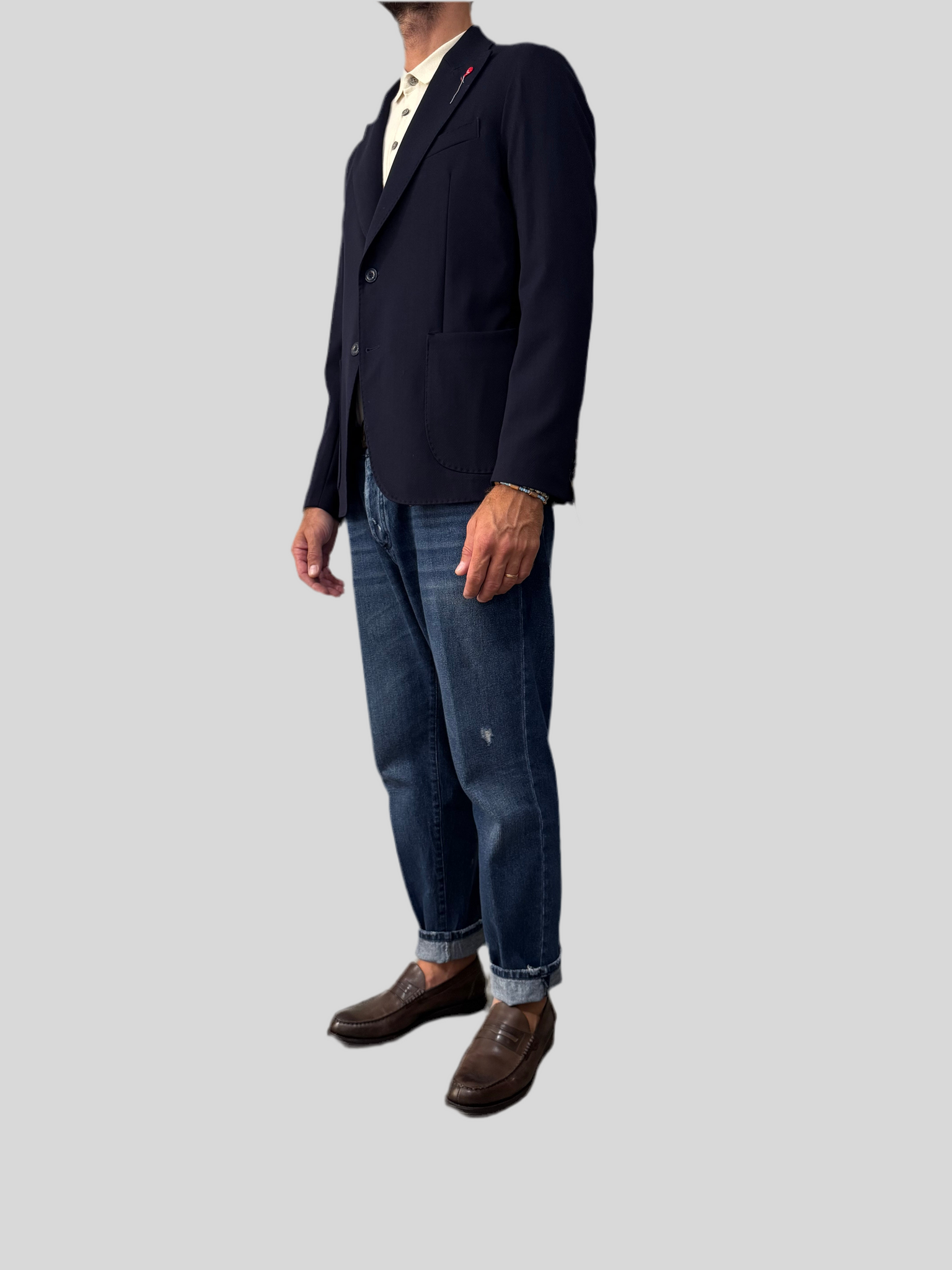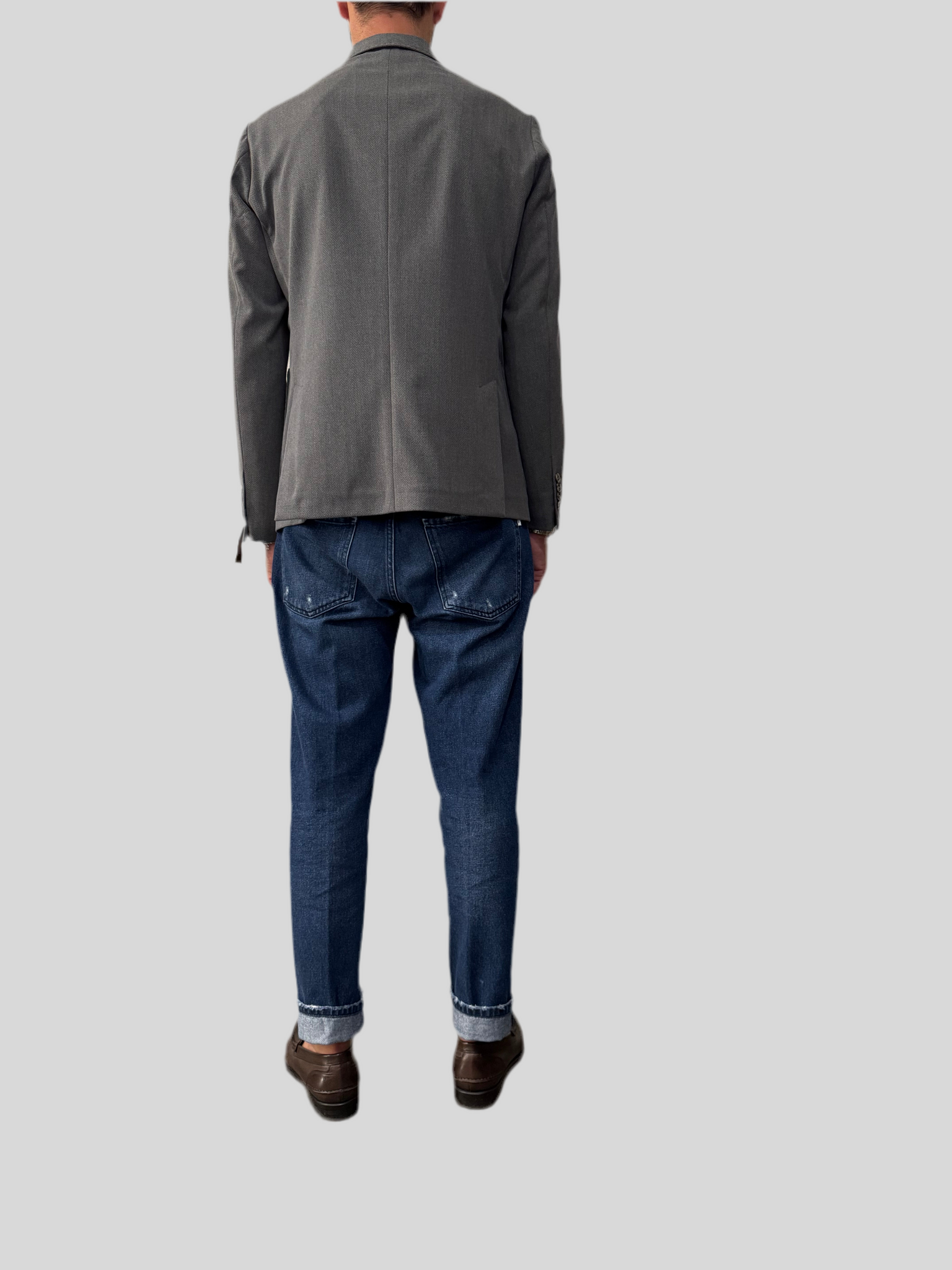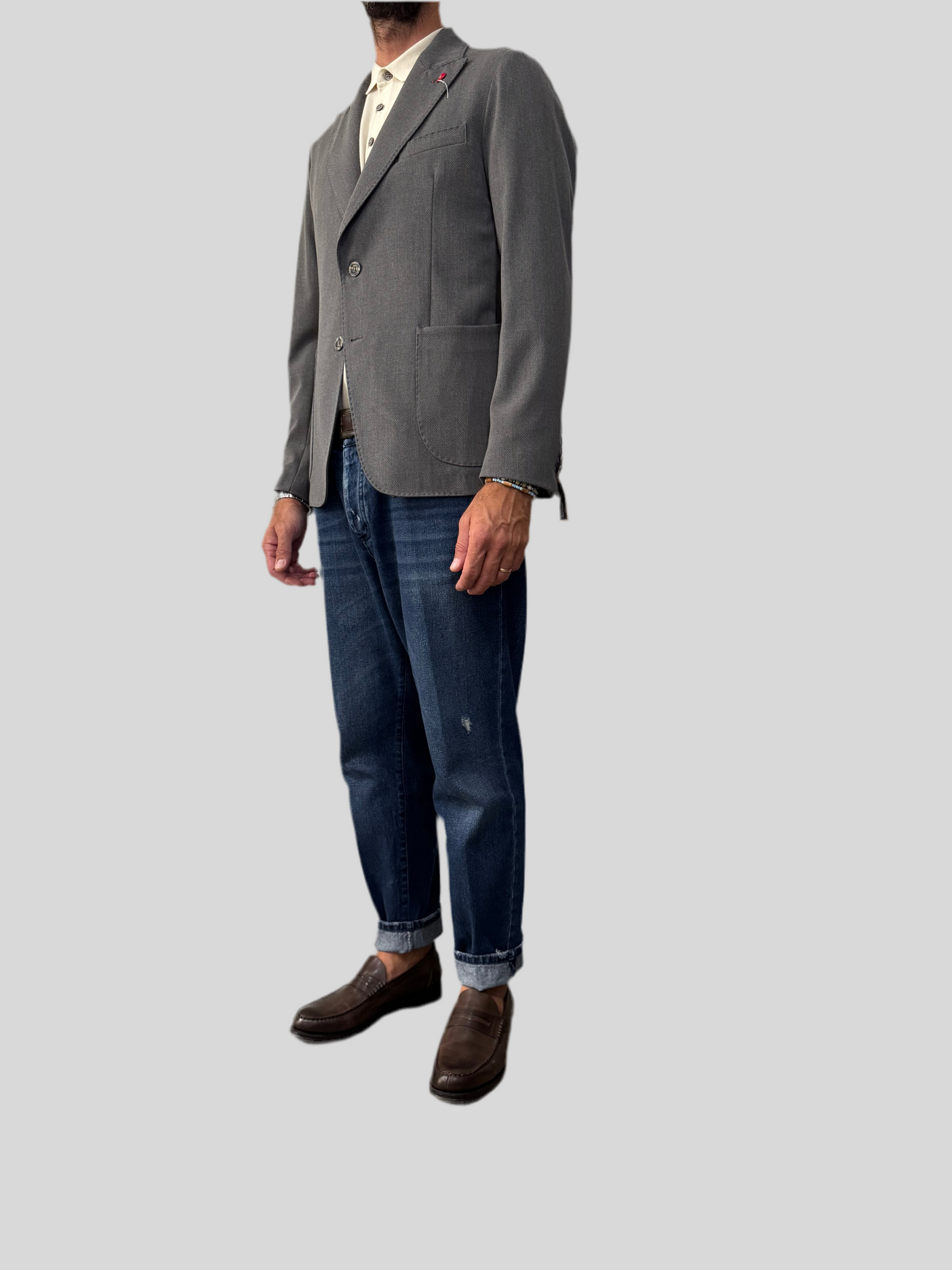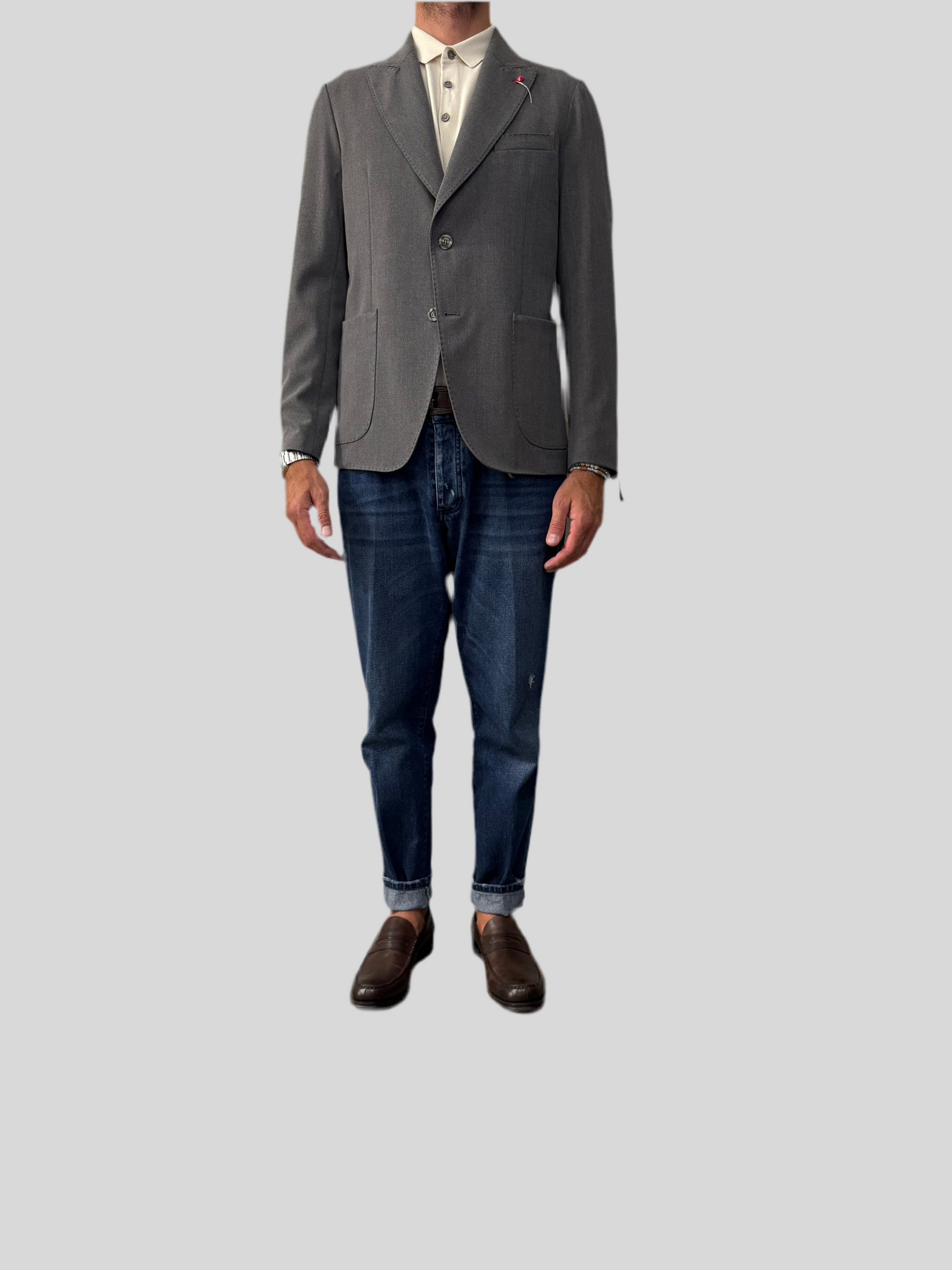 This single-breasted jacket features a classic two-button design and a distinctive lance-shaped chest pocket, crafted from a refined herringbone fabric. The garment includes two top pockets and two rear vents, offering both style and comfort with a regular fit. Made in Italy, it exemplifies expert tailoring and premium quality materials for a sophisticated and timeless look.