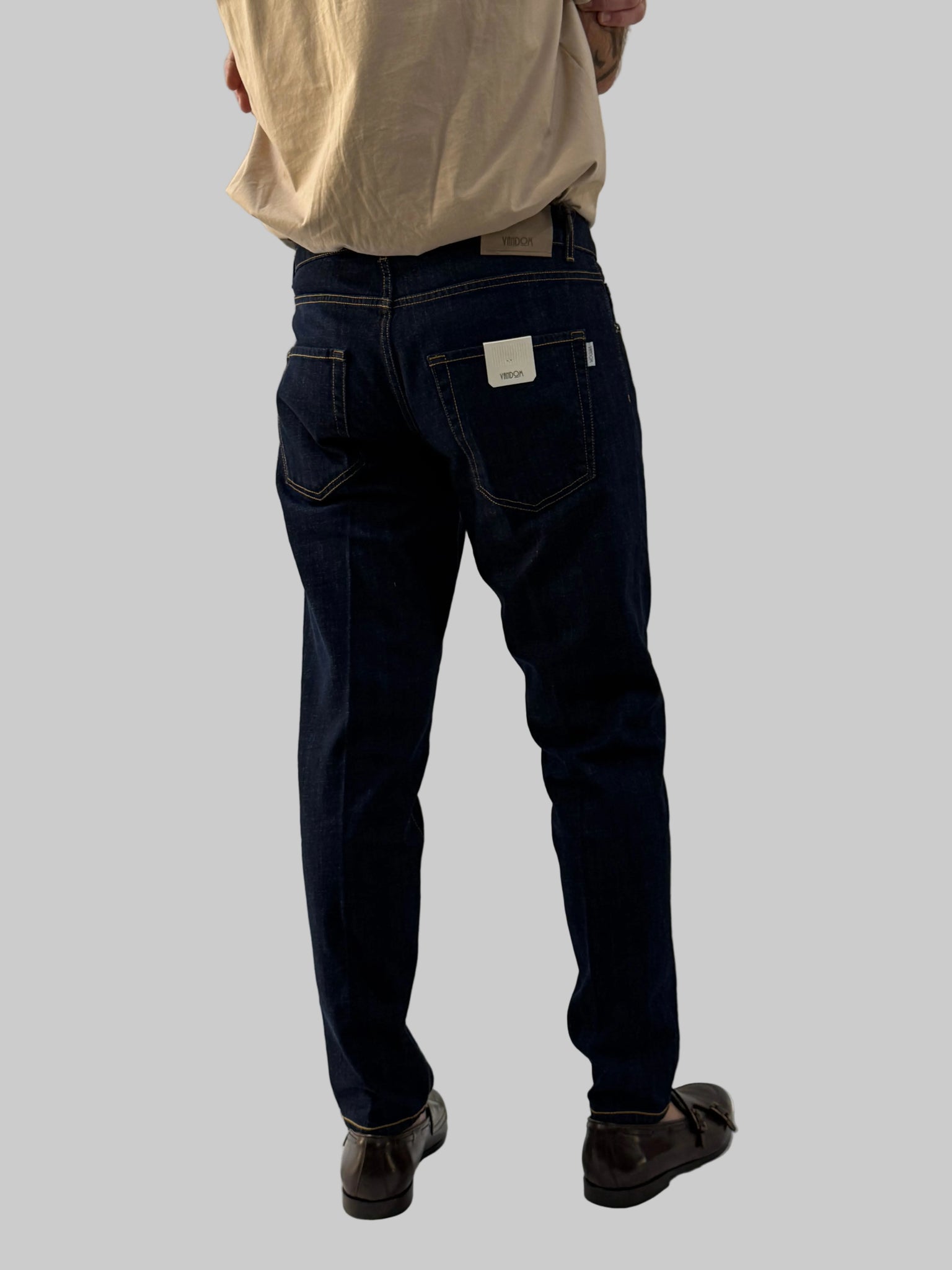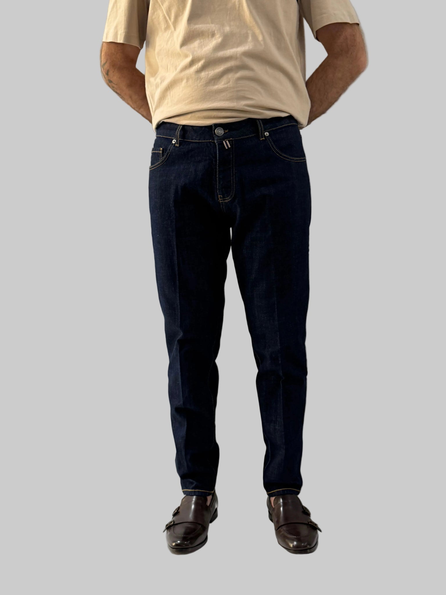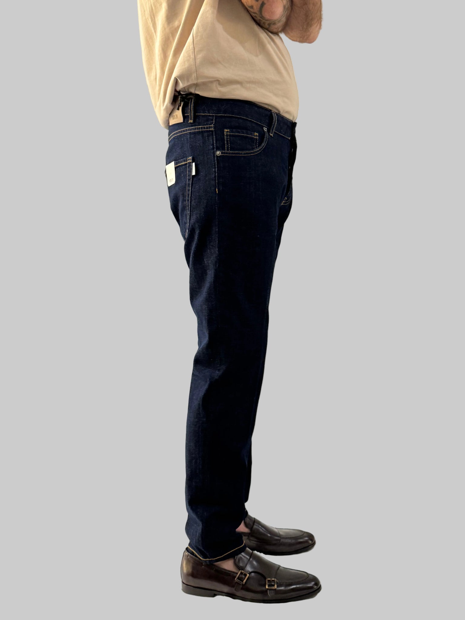 Jeans classici a 5 tasche realizzati in denim tela elastica che garantisce comfort e libertà di movimento. Vestibilità regolare che si adatta perfettamente alla silhouette, con una costruzione robusta e duratura. Prodotto interamente in Italia, unisce qualità artigianale e design senza tempo. Ideale per chi ricerca un capo versatile e affidabile, perfetto per ogni occasione, dal casual al smart-casual.