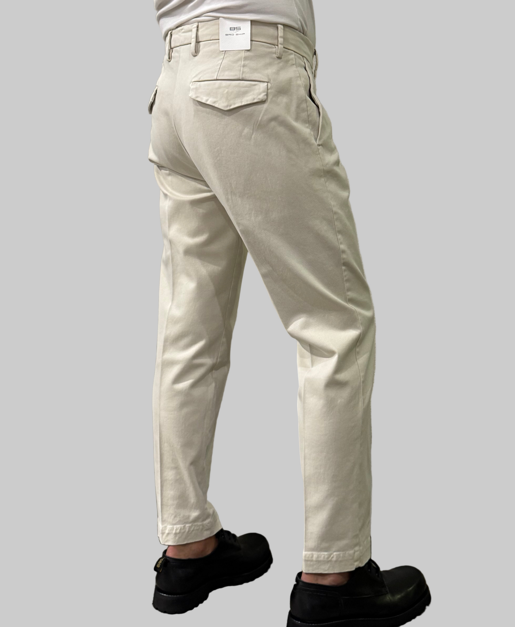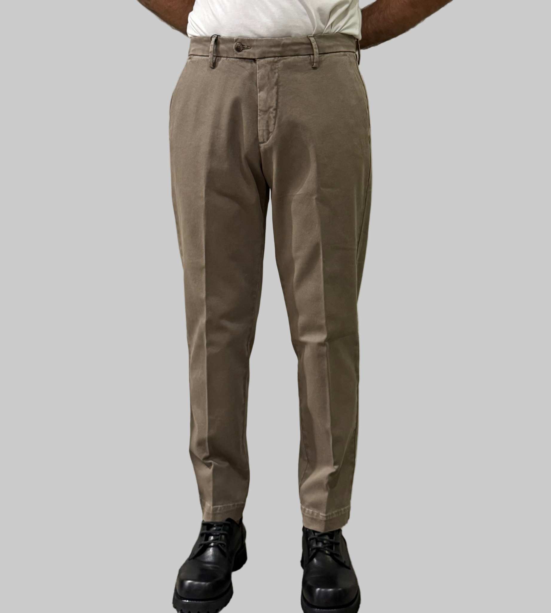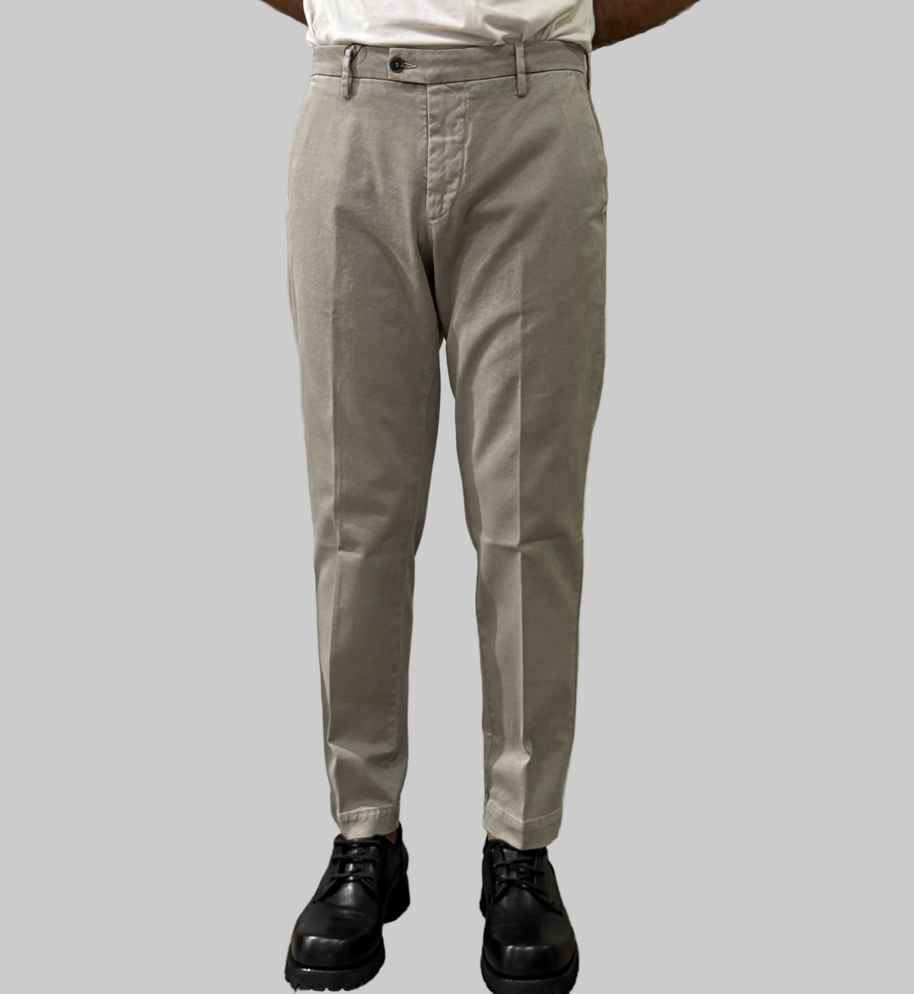 Pantaloni Sarajevo in gabardine di cotone con tasche America e fondo 18 cm. Comodi e di qualità superiore, vestibilità regular fit e realizzati in Italia. Perfetti per un look elegante e sofisticato.
