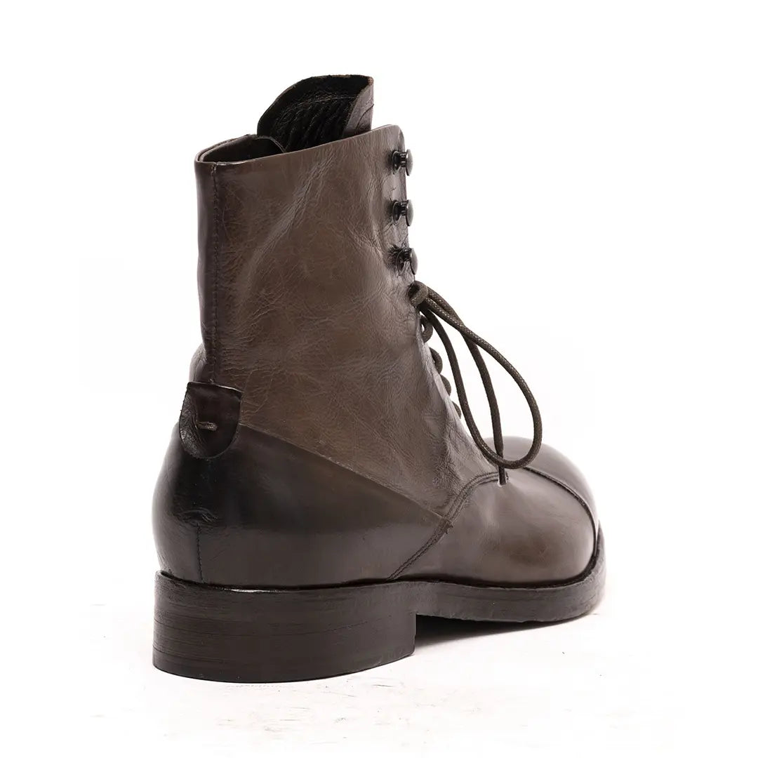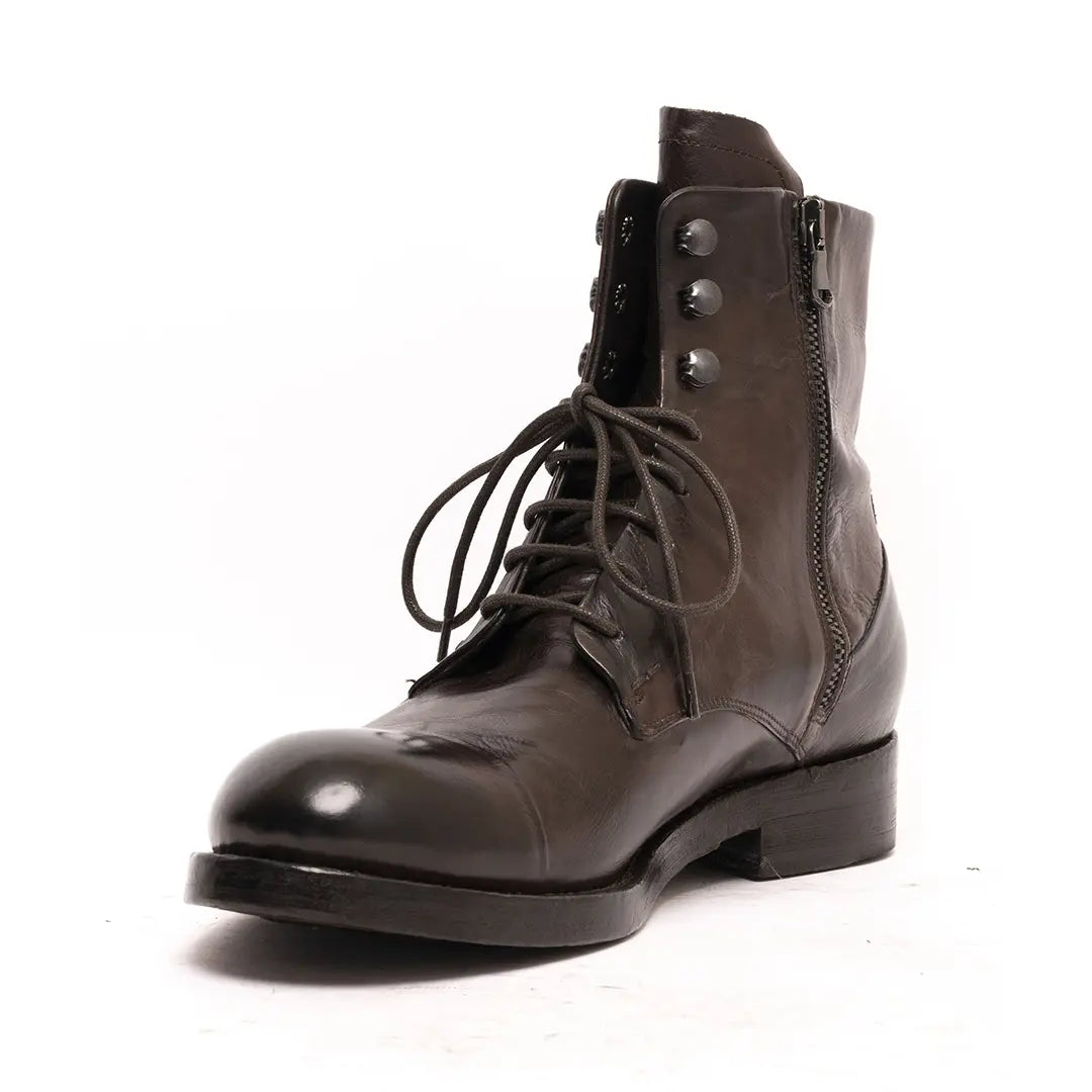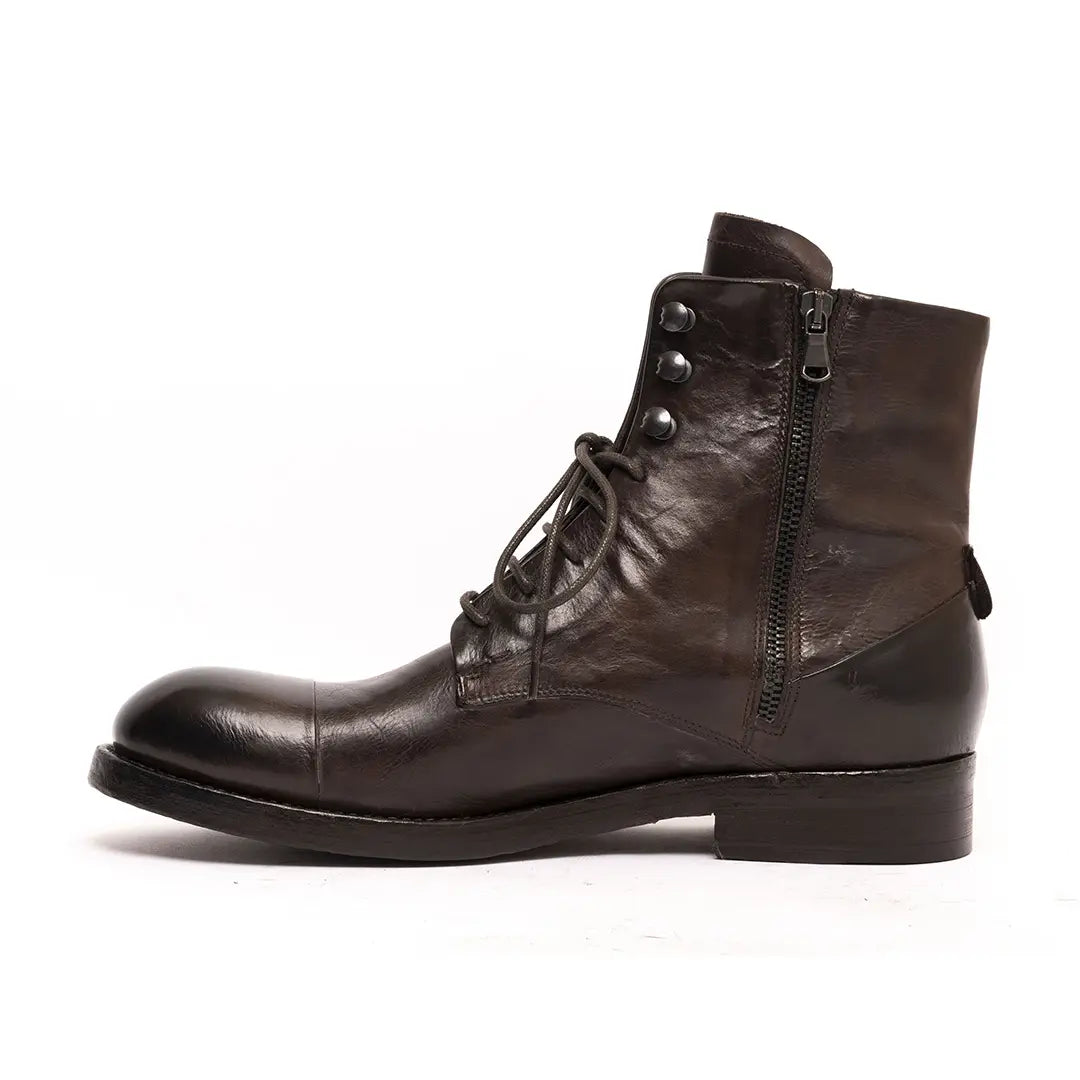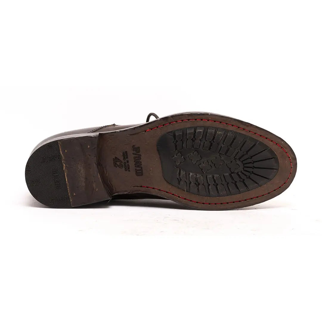 Tipo di lavorazione: pellame spazzolato a mano. La suola viene lavata e fissata alla tomaia tramite la cucitura «Blake»